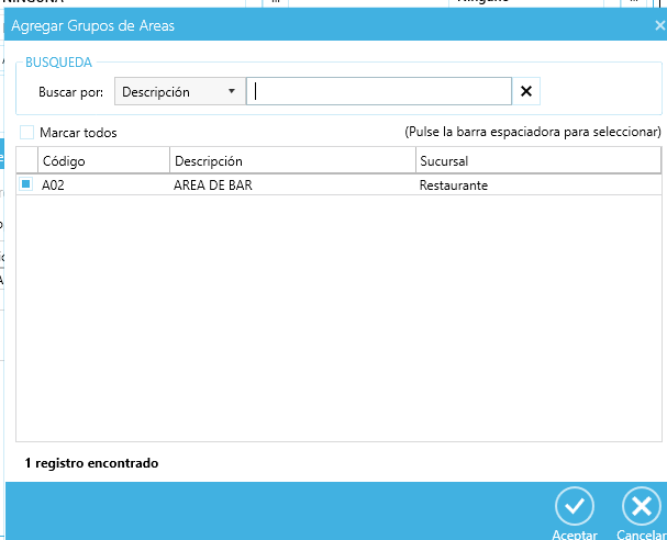 Acá se visualiza lo configurado en el Mantenimiento de Áreas