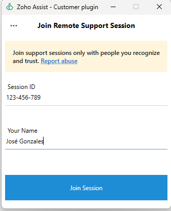 Cuando se abra Zoho Assist: