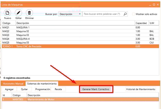 Si se genera desde este botón se considerará como Mantenimiento Correctivo.