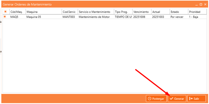 Si se genera desde este botón se considerará como Mantenimiento Preventivo.