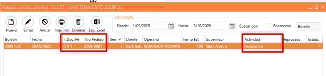 7.- La actividad realizada se obtiene de los boletines relacionados a la OT.