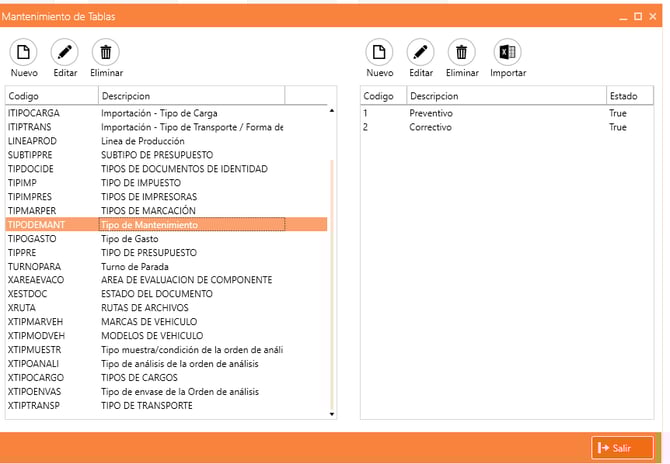 1) En el Maestro de Tablas se debe tener configurado el campo TIPODEMANT con el Código 1 para preventivo y 2 para correctivo