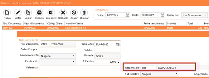 5.- La información del responsable se obtiene de la OT generado para la máquinaria.