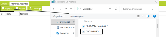 c) Archivos Adjuntos: Esta función permite cargar el comprobante digital en diversos formatos, tales como PDF, Word o imágenes (JPG, PNG). Es ideal para mantener un respaldo visual de la factura física o del archivo XML.